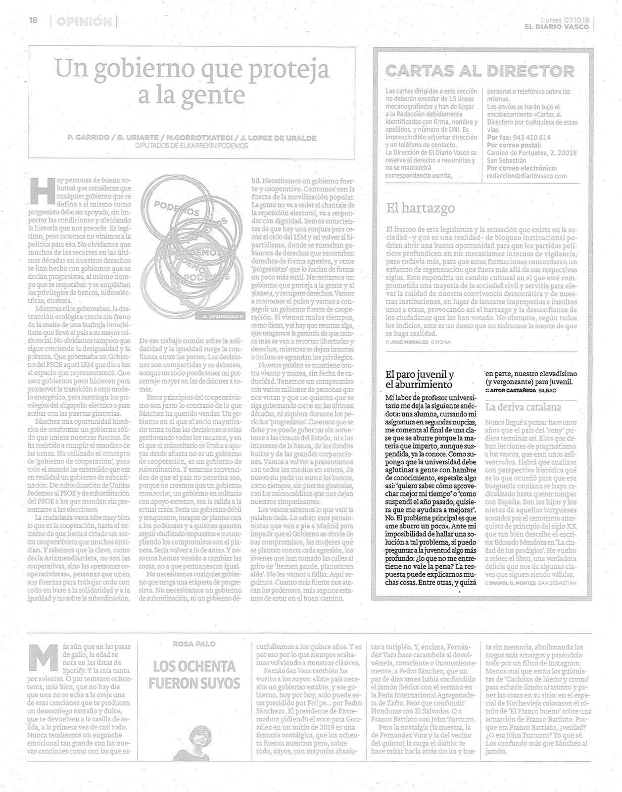 Texto publicado en El Diario Vasco, p.18 (7-X-2019)